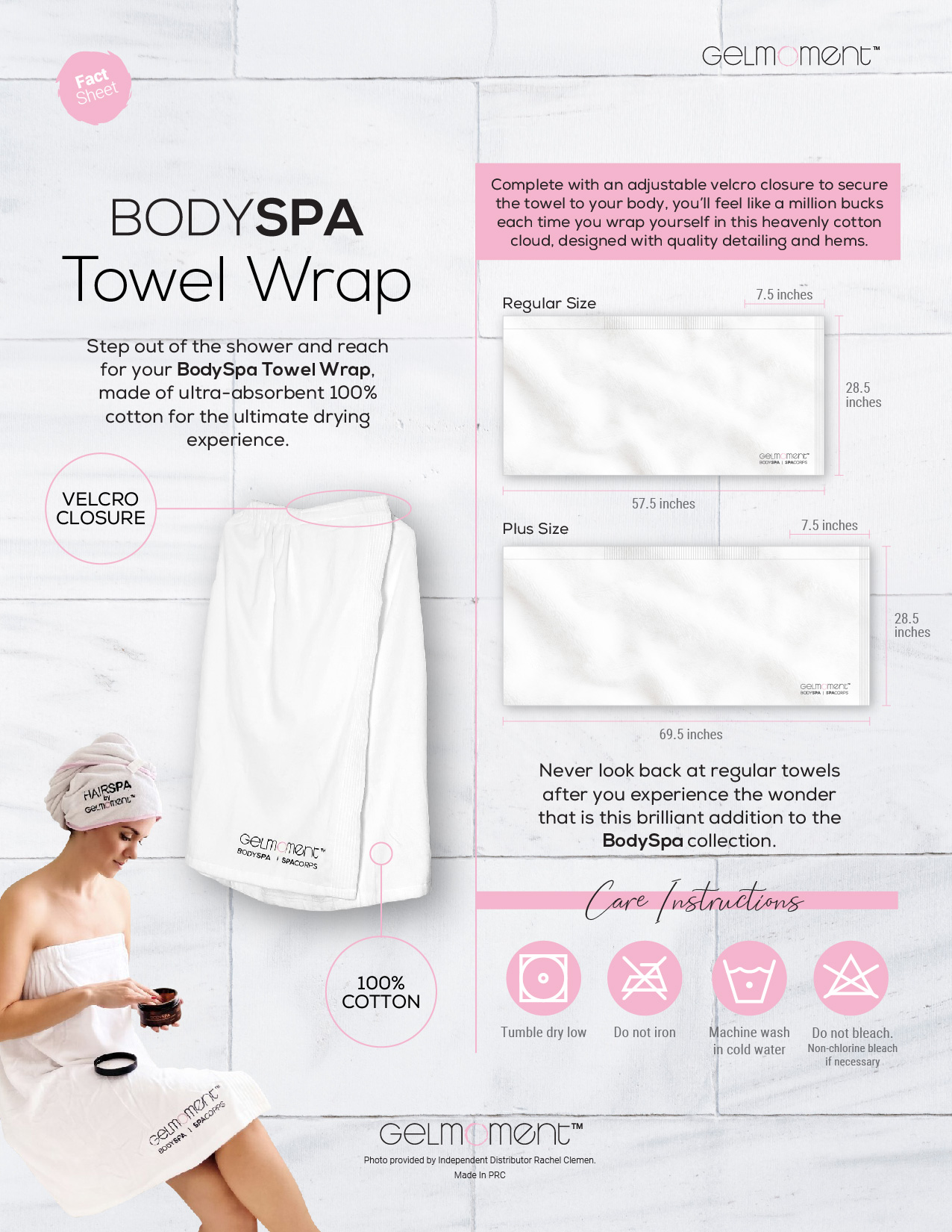 Up your spa game with this luxurious BodySpa Towel Wrap! We are so excited to announce our newest addition to the BodySpa collection: an ultra-absorbent 100% cotton wrap-around towel. Complete with an adjustable velcro closure to secure the towel to your body, this unique design frees your hands so that you can busy yourself elsewhere while the towel does its job for you.
