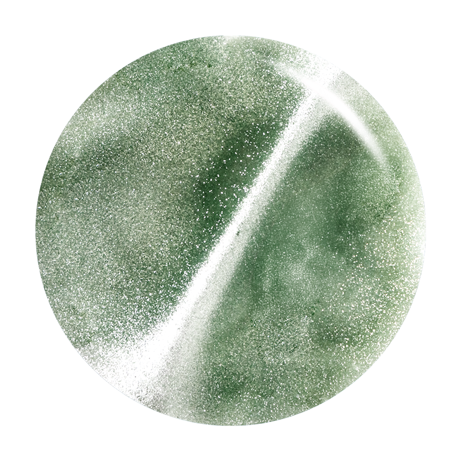 Sage green. Medium-dark. Silver magnetic shimmer. Opaque. Cool undertone.