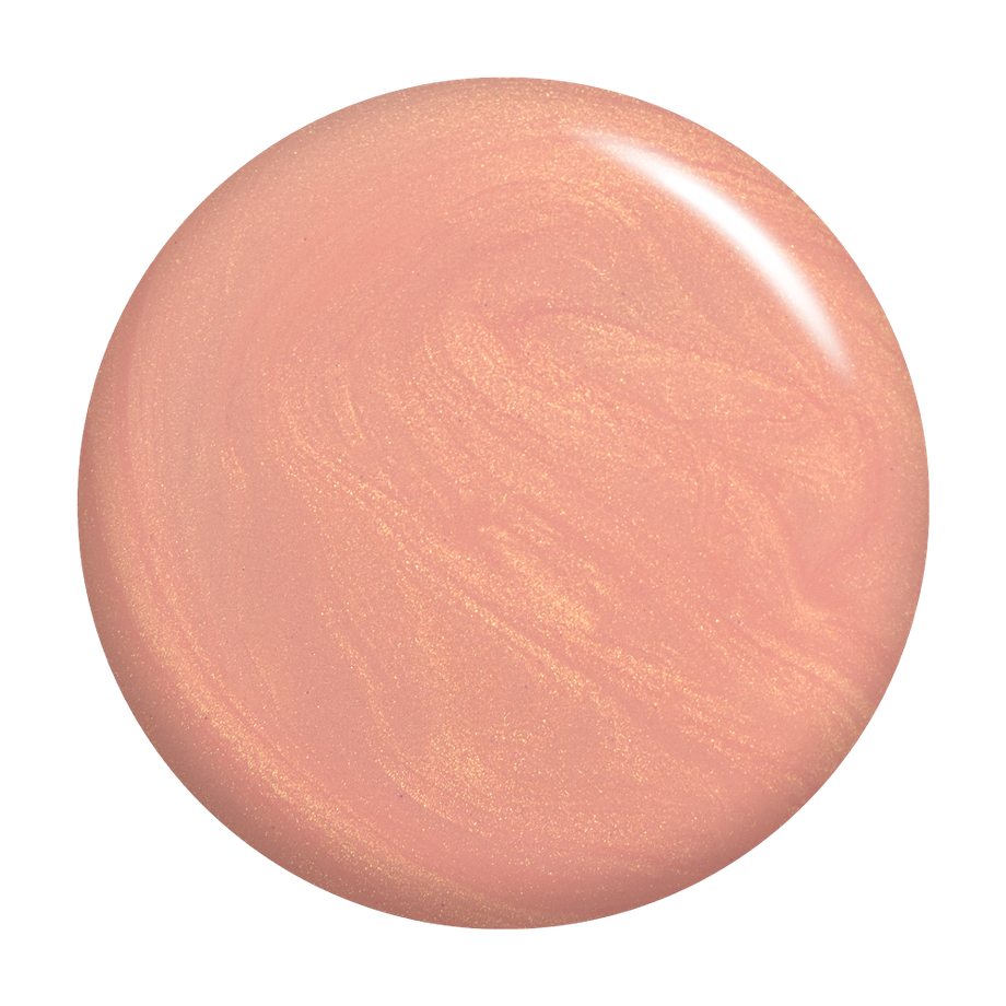 Pale muted peach. Pearl finish. Golden iridescence. Opaque. Warm undertone.